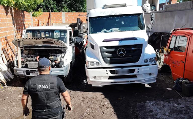 En los allanamientos, efectuados con apoyo de unidades GOPE y COP, se detuvo a dos personas con antecedentes penales. Se incautaron placas patentes falsas, herramientas para alterar chasis y motores, una carabina sin registro, dosis de droga y otros elementos relacionados con los delitos.